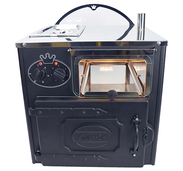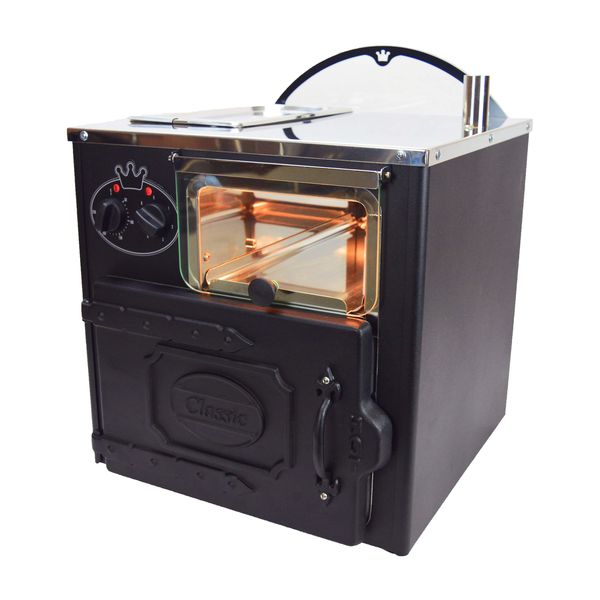 - Oven external dimensions – Height x Width x Depth (mm) (incl. menu board & chimney flue): 570 x 455 x 490